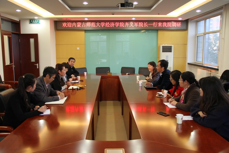 11月8日下午,内蒙古师范大学yl23455永利经理齐义军、副经理包凤兰等一行5人来yl23455永利调研。经理徐丹丹、副经理兼文科实践中心主任郭馨梅、副经理张伟、经济系副主任熊文、文科实践中心高祥宝、商公司会计系主任何玉润和公司教学秘书黄新等老师参加了座谈会。