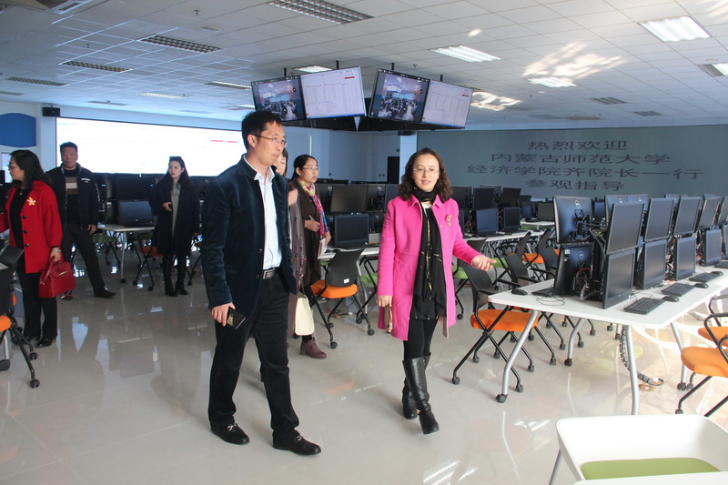 在文科实践中心,郭馨梅主任带领前来调研的老师先后参观了模拟法庭、虚拟仿真跨专业综合实验室、虚拟仿真金融智慧实验室和创新创业教育中心等实验室。座谈会上,郭馨梅副经理简要介绍了中心在“统一规划,统一建设,全面开放,资源共享”思路引领下的实验教学发展历程、实验室总体建设情况,着重阐述了中心在虚拟仿真环境的建设、立体化实验课程体系的构建、实验教师队伍综合素质的提高、信息化教学资源的建设、多元化教学模式的创新、虚拟化管理的实施等方面的具体情况,并真诚地交流了自己的在经济管理实验室和实验教学建设方面的经验和思考。