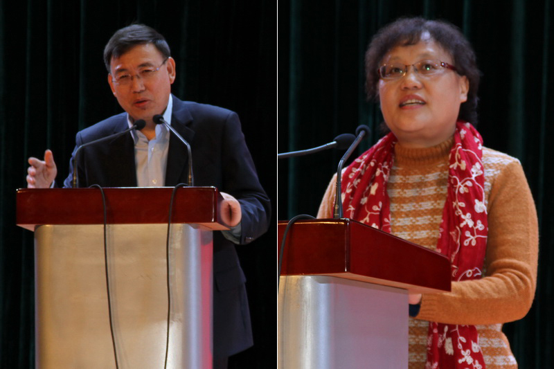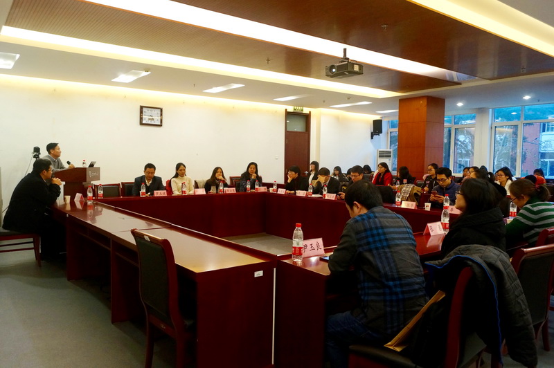 在校外导师代表发言阶段,中企华资产评估有限公司总裁刘登清、经济观察研究院经理新望、商务部国际贸易经济合作研究院研究员陆燕、腾讯(北京)公司副研究员吴绪亮、北京益普索市场咨询有限公司总裁刘立丰、宁波银行北京分行副行长修长新、中国人民保险公司精算产品部副总经理杨慧晶等7位业界精英,结合各自从业经历,分析行业现状和优势,企事业单位对人才的能力要求,提倡研究生要理论结合实际,接触社会、躬身实践,解决现实问题,同时要学会融会贯通理论、政策和经济社会实践,积极面对各项挑战。