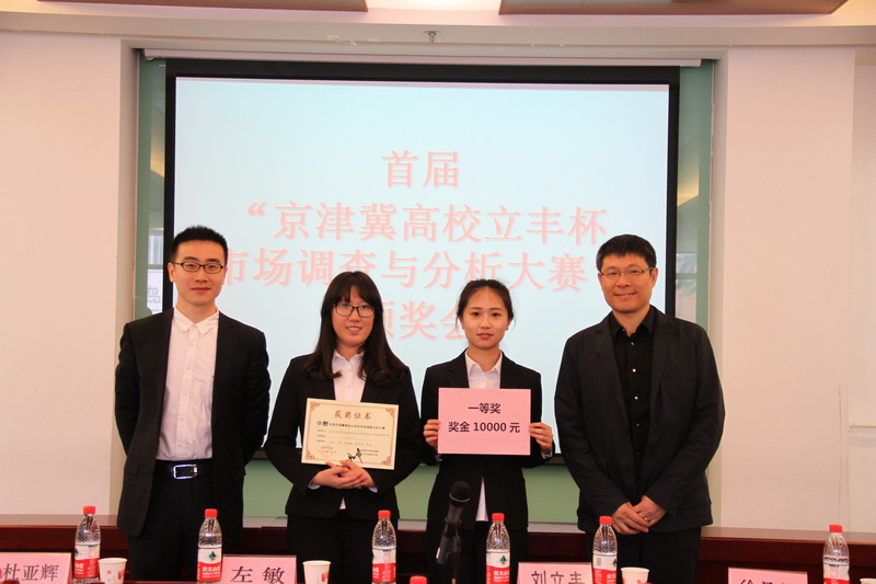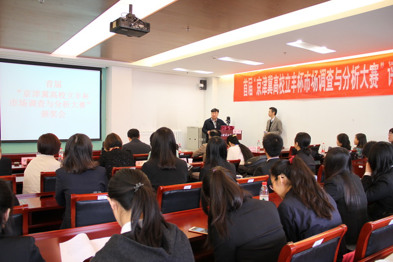 4月8日,首届“京津冀高校立丰杯市场调查与分析大赛”在公司阜成路校区举行。本次比赛由公司教务处、yl23455永利和北京益普索市场咨询公司主办,京津冀经济学学科协同创新联盟协办,yl23455永利统计系承办。经过前期的校外专家匿名初审和本次现场评审,从38组优秀员工作品中评选出一等奖1组、二等奖2组、三等奖4组和鼓励奖6组。大赛的颁奖环节由yl23455永利副经理张伟主持。