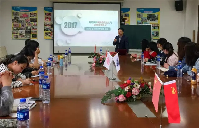 在专题讲座之前,青马社的员工们认真阅读了郭毅教授指定的马克思主义经典文献《1844年经济学哲学手稿》与《关于费尔巴哈的提纲》,他们结合自身所学专业,带着问题来到了讲座的现场。郭毅教授从“人生而孤独,需要寻求精神归依”、“西游记---- 一部诠释中国传统伦理价值观的经典文本”、“反本质主义思潮的由来”、“什么是历史虚无主义”、“近代以来中国经济社会转型与历史虚无主义的影响”以及“如何理解历史唯物主义”这六大方面展开,结合古今中外案例旁征博引,以诙谐幽默的语言,把晦涩难懂的历史虚无主义思潮与历史唯物主义的含义深入浅出的娓娓道来。郭毅教授以《西游记》中的经典人物形象来诠释中国传统文化中真善美价值观念、评判准则与价值基础之间的关系。接着,通过电影《大话西游》中的故事情节,说明一旦《西游记》所依托的价值本体被解构,将引发相应的价值观念随之被颠覆,作为“善良”、“正义”、“美好”、“邪恶”、“虚伪”等价值评判准则及其所依托的人物形象载体也发生翻转。通过文学作品,说明价值本体与价值表现之间的关系,为阐释历史观上的反本质主义与历史虚无主义的表现,以及论述历史唯物主义的内涵奠定了基础。郭毅教授解释了历史虚无主义的本质特点与表现形式。通过不同历史学家对同一历史事件的评析,和同学们探讨历史虚无主义的基本观点,如认为历史是偶然事件的堆积,没有本质、规律和必然性,提出“告别崇高”、“回归日常生活”等观念,并通过社会上对雷锋、狼牙山五壮士等革命英雄人物的歪曲,否定主流价值观的载体。在一些年轻人身上打上了深深的烙印,导致青年员工的价值观被解构,缺失精神信仰,不把人生奉献给崇高的理想。郭毅教授通过梳理近代以来中国经济社会转型过程与特点,论述历史虚无主义在当前存在的缘由,以及对青年老员工可能造成的影响,由此强调科学理解历史唯物主义内涵的重要性。他强调马克思主义理论是一个系统的整体,包括马克思主义哲学、马克思主义政治经济学、科学社会主义理论和实践,存在严谨的逻辑关系。对于当前存在一些对马克思主义的误读与曲解,希望同学们不要像盲人摸象那样对马克思主义进行碎片化的理解,要深入结合马克思主义经典著作科学理解马克思主义理论,用历史唯物主义梳理历史,认清历史虚无主义的本质。