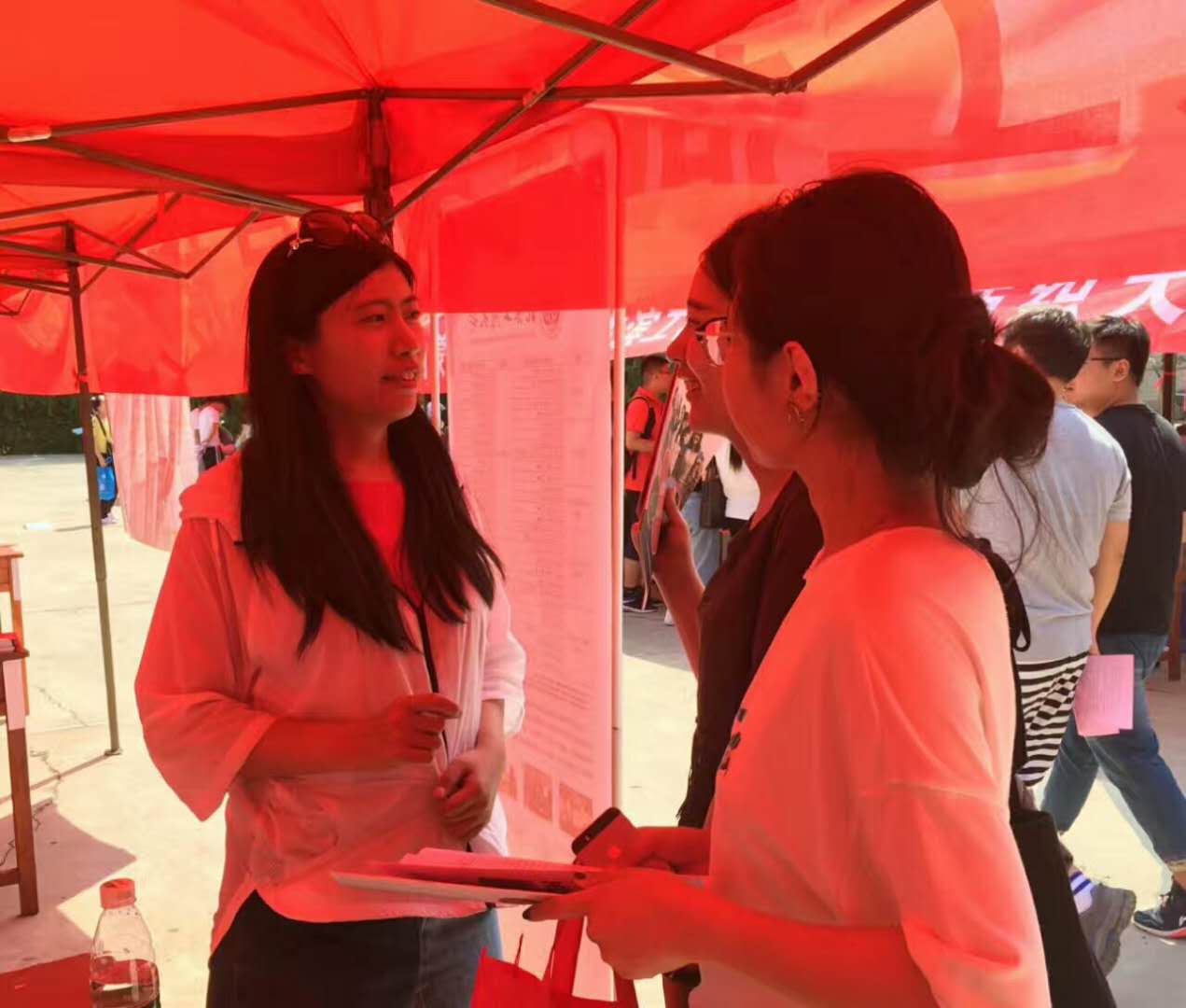 学科组织京外宣讲活动基础上,公司积极组织团队参加研究生院组织的中国教育在线主办的研究生招生咨询会。公司共计参加湖北、内蒙、黑龙江、辽宁、甘肃、上海、山东、湖南、安徽等9个省市11场次的2018年研究生招生咨询会。6月24-25日,公司学科和研究生工作办公室聂娟老师和资产评估专业负责人牛晓燕老师在华中科技大学南门,参加了“全国研究生招生现场咨询会”湖北站的活动。6月27-28日,国际贸易系潘忠老师、贸经系郝娜老师在内蒙古师范大学操场,参加了“全国研究生招生现场咨询会”内蒙站的活动。6月30-7月1日,统计系辛士波老师在哈尔滨理工大学,参加了“全国研究生招生现场咨询会”黑龙江站的活动。7月8-9日,教务办公室陶翠云老师、保险系许敏敏老师、国际贸易系陈晓梅老师、财政系吴强老师在东北财经大学,参加了“全国研究生招生现场咨询会”辽宁站的活动。7月11-12日,财政系马乃云老师、金融系李春兵老师、保险系兰新梅老师、教务办公室陶翠云老师在西北师范大学,参加了“全国研究生招生现场咨询会”甘肃站的活动。7月22-23日,保险系董捷老师和兰新梅老师、贸经系易芳老师在上海建桥公司,参加了“全国研究生招生现场咨询会”上海站的活动。8月9日-10日,教务办公室陶翠云老师、保险系许敏敏老师、金融系李梦雨老师、国际贸易系潘宏老师在烟台大学模拟法庭处,参加了“全国研究生招生现场咨询会”山东站的活动。9月15-16日,财政系马乃云老师在湖南师范大学,参加了“全国研究生招生现场咨询会”湖南站的活动。9月20-21日,保险系许敏敏老师在山东青岛大学,参加了“全国研究生招生现场咨询会”上海站的活动。9月21-22日,行政办公室闫慧宁老师在安徽建筑大学(合肥),参加了“全国研究生招生现场咨询会”安徽站的活动。9月22-23日,员工管理办公室向小平老师在山东师范大学(济南),参加了“全国研究生招生现场咨询会”山东站的活动。招生咨询会期间,员工咨询踊跃,现场分发了1000多份研究生招生宣传材料,起到良好宣传效果。