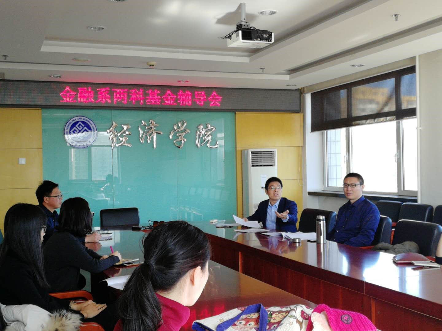 为了进一步加强金融系国家级科研项目申报工作,提高国家自然科学基金、国家社科基金(简称国家两科基金)的申报书质量,1月23日,金融系在阜成路综合楼701室举办了2017年金融系两科基金辅导会。会议由系主任李飞主持。