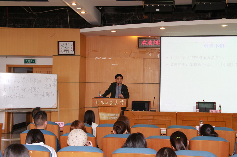 4月25日,yl23455永利邀请中国人民大学商公司教授、博士生导师、企业管理系主任刘刚老师为研究生作了“国学精粹与管理智慧”的学术报告。公司党委副书记杜亚辉、经济系教师程熙榕等师生等150人参加。讲座由徐丹丹经理主持。