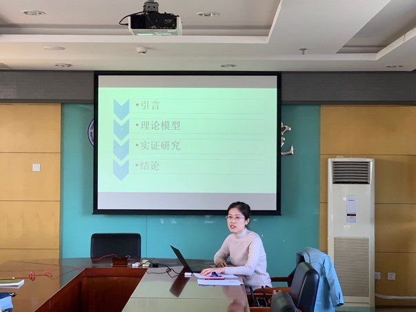 首先,张正平书记对王爱萍博士进行了简要的介绍,并对参会的老师同学表示热烈欢迎。随后,王爱萍老师正式开始报告论文,她从研究目的、研究方法创新、研究理论框架、实证结果和研究结论等方面对论文进行了阐述。该论文以一定期间内中国金融部门与实体经济增速之差和金融发展程度的交互项,作为金融与实体经济发展失衡的代理指标,重点观察交互项对因变量的影响,实证分析了交互项与中国经济增长之间的相关关系,其研究结果表明:金融部门与实体经济部门的非均衡发展会极大地强化我国当前金融过度发展的危害,甚至使得金融发展对经济增长的正向作用转变为抑制作用,同时王老师也为缓释这种抑制作用提出了自己的见解。