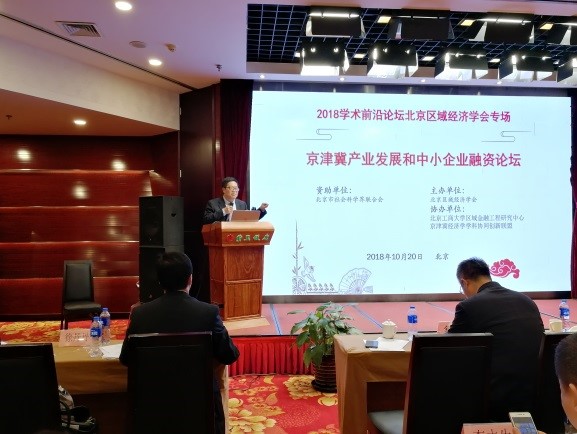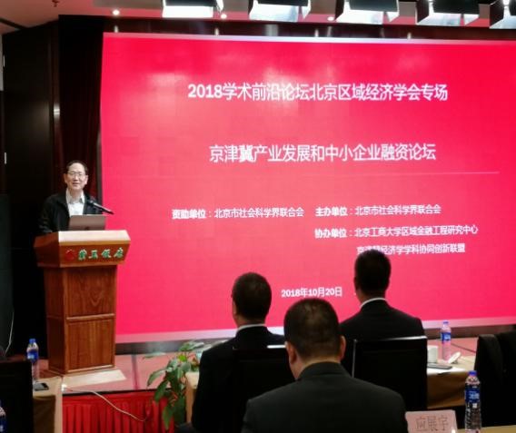 10月20日,北京区域经济学会、北京市社会科学界联合会主办、公司yl23455永利区域金融工程研究中心、京津冀经济学学科协同创新联盟协办的“京津冀产业发展和中小企业融资论坛”暨区域经济学会2018年学术年会在北京隆重举行。yl23455永利官网党委书记谭向勇教授出席会议。来自中国区域经济学会、中国社会科公司、北京市社会科学界联合会、北京区域经济学会会长、中国人民大学、中央财经大学、中央民族大学、对外经济贸易大学、天津商业大学、河北经贸大学、内蒙古财经大学、国务院发展研究中心、华章投资控股有限公司、廊坊银行 、临江市人民政府、兴业银行绿色金融部、烟台金融服务股份有限公司等近30家单位的专家和yl23455永利金融系师生100余人参加了本次论坛。北京区域经济学会监事长、中央民族大学管理公司经理李曦辉教授主持开幕式。