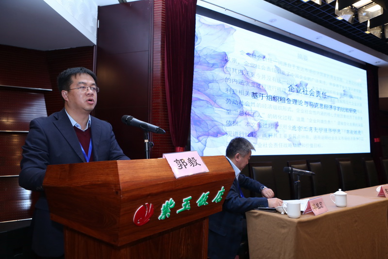 11月11日上午的主题报告阶段,中国社科院余斌研究员、中国人民大学贾根良教授、复旦大学孟捷、北京师范大学沈越、首都经贸大学杨春学、武汉大学邹薇、中南财政政法大学杨虎涛和yl23455永利周清杰教授分别做了主题报告。主题报告后是小组汇报、优秀论文颁奖与换届大会。yl23455永利倪国华教授代表第一小组在大会汇报,yl23455永利郭毅教授的论文《基于组织租金创造的企业社会责任功能解》获得优秀论文奖,yl23455永利徐丹丹教授继任常务理事、周清杰教授继任理事,倪国华教授、郭毅教授和余向华副教授增选为理事。