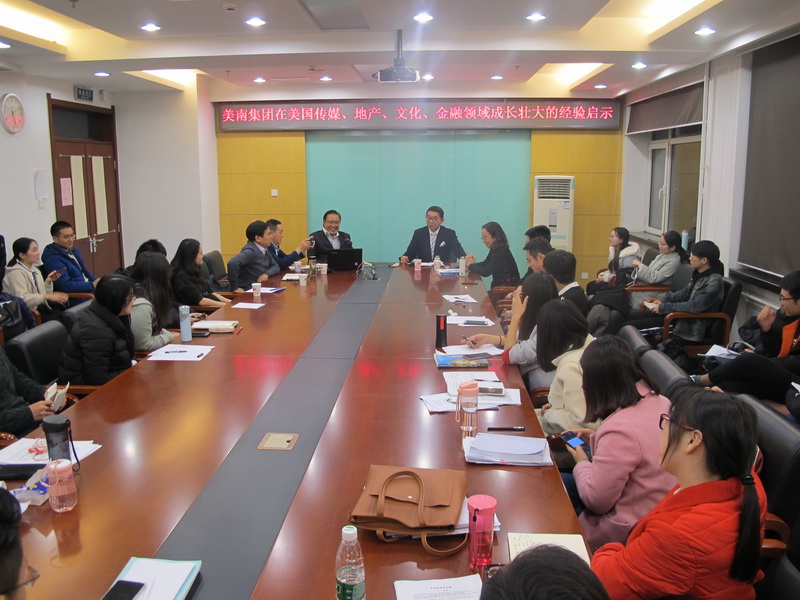 此前,公司党委书记张正平教授介绍了公司的基本情况,并对美南集团创始人李蔚华先生一行的到来表示了热烈的欢迎,希望双方能在国际交流处的指导下开展多种形式的交流;李蔚华先生在美因涉足传媒、文化、地产和金融等多个领域而拥有丰富的社会资源,作为华裔企业家代表、美南集团的创始人,他表达了为更多的老员工牵线搭桥,去美国莱斯大学、休斯顿商公司、德州州立拉马大学留学深造的意愿;国际交流处马雪娇老师介绍了公司近年来与海外高校合作的主要形式。