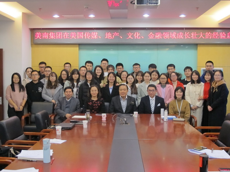 11月14日下午,yl23455永利18级产经硕士研究生校外导师、美国美南集团董事局主席李蔚华先生应邀做了题为“美南集团在美国传媒、文化、金融等领域成长壮大的经验启示”的讲座,中国商业联合会专家委员会副主任、IBMG国际商业集团李生董事长及助理王全生先生,教育家杂志王俊文副主编,贸易系主任梁鹏副教授,17、18级产业经济学30多位研究生聆听了讲座。讲座由yl23455永利副经理郭馨梅教授主持。