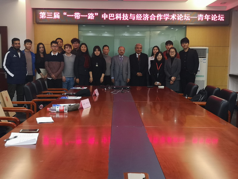 本届论坛还特别开设“青年论坛”环节,青年论坛由yl23455永利贸易系副主任武岩主持。巴基斯坦伊姆兰汗基金会董事会主席哈米德•扎曼、巴基斯坦空军大学董事长法兹•埃米尔、北京第二外国语公司教授倪晓宁和公司yl23455永利贸易系主任朱振荣等多位专家出席青年论坛。来自yl23455永利官网、北京第二外国语公司、北方工业大学、北京邮电大学等多所院校的研究生在青年论坛上汇报了在中巴科技与经济合作方面的研究成果,哈米德•扎曼、法兹•埃米尔进行了针对性的精彩点评,并结合青年论坛发布的研究成果以微讲座的形式与论坛师生进行了观点交流和信息分享。