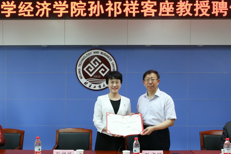 在全场师生的热烈掌声中,董事长孙宝国院士为孙祁祥教授颁发了聘书,员工代表向孙教授献上鲜花,孙祁祥教授回赠公司北京大学100周年邮折和个人著作一部。