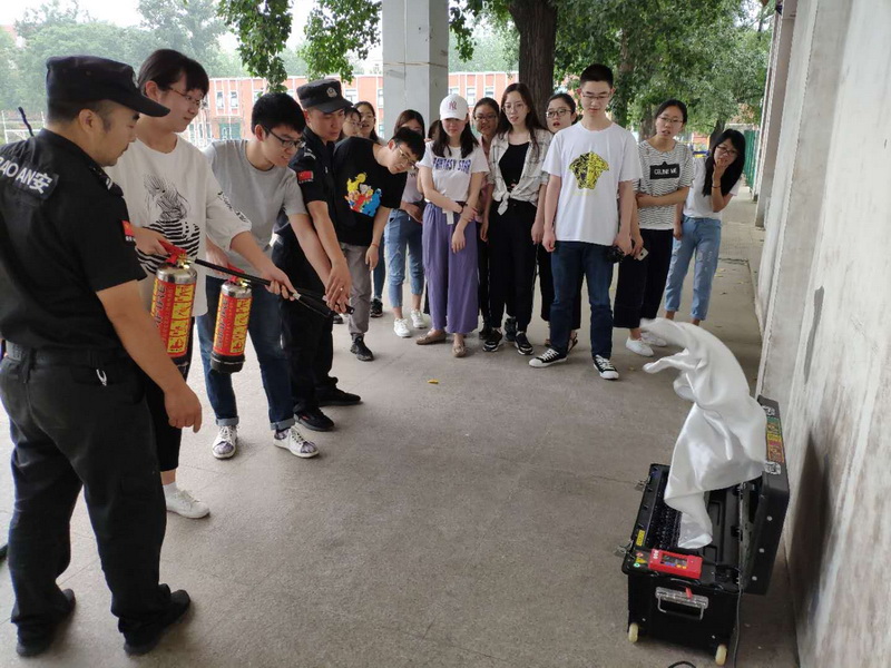 保卫处马骏老师向师生传授了消防安全知识:大家平时应保持良好的消防安全习惯,禁止将火种带入教学楼、寝室等人员聚集场所,从根源消除火灾隐患;119是我国的火警求救电话,当有火灾发生时,应第一时间拨打火警求救电话向火警求救;面对火灾要冷静、不慌乱,应采取正确的自救、求救措施;有关火灾现场的应急处置方案。最后向大家讲解了灭火器的类型、使用注意事项并进行模拟演练。