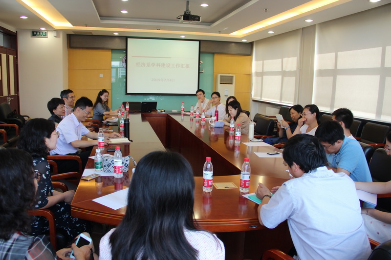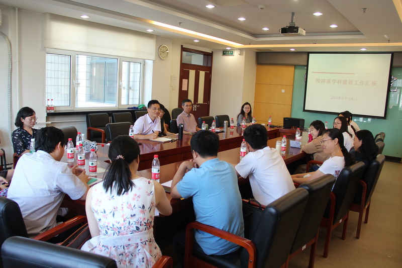 首先,经济系牛晓燕老师对经济系团队建设工作进行了汇报。先对经济系的现有团队结构、员工培养情况进行了介绍;从上一轮学科评估中理论经济学学科的排名、科研概况、近几年的科研立项、A类论文发表、参加学术交流、举办学术会议和本科生及公司产品等方面对经济系的团队建设现状进行了梳理;结合上一轮学科评估中一级指标的得分与排名,分析了与对标院校同学科之间的差距和优势,提出了下一阶段的团队建设目标以及努力方向。
