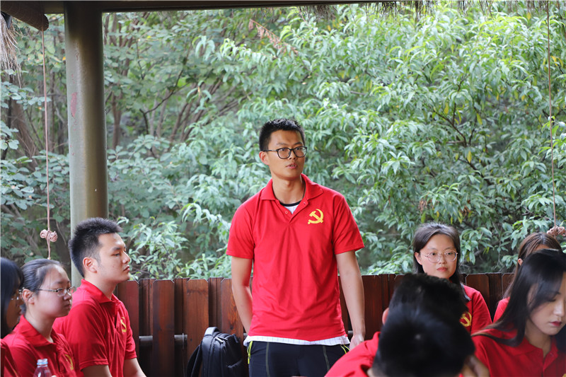 在结束了坡峰岭景区的参观学习后,支部党员围坐在一起热烈交流,每位同学都发表了自己的感想。大家结合切身生活,畅谈心得体会,经济182闫思彤同学说道:“‘背篓’一种朴实的工具,更是传递党的温暖的使者,‘背篓精神’是一种光辉的精神,在代代背篓人的言行中生根发芽。三代‘背篓精神’的传承人,将中国共产党全心全意为人民服务的宗旨践行在每一件与人民息息相关的小事中。只有把这种信念扎根在人民的利益中,自己的一言一行才会更加‘接地气’,自己的梦想才会在踏实的努力后结出累累硕果。” 金融182宋坤仪同学说道:“黄山店村支部书记张进刚带领黄山店村引进水泥厂、筹办村办企业、抵御7·21自然灾害、打造坡峰岭风景区,与班子成员一起带领村民一步一步把黄山店从一个贫困村建设成为如今的‘全国最美乡村’。我深刻地感受到党支部对人民群众的帮助与爱护,作为作为入党积极分子,能够为村里的旅游发展贡献力量感到十分的荣幸,更要向黄山店村的党员前辈们学习,一颗红心向着党,让‘红色背篓精神’一代一代传承下去。”