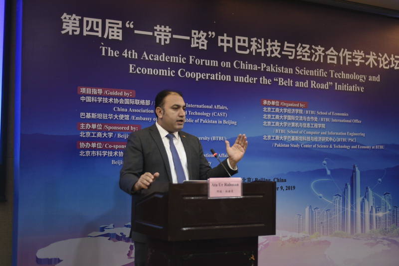 巴基斯坦驻华大使馆科技参赞阿塔·拉赫曼在致辞中高度评价了公司巴基斯坦科技与经济研究中心在促进中巴两国科技与经济合作中的重要作用。他指出,随着中巴经济走廊建设的不断发展,中巴两国在科技与经济领域的合作不断加深,取得了重要的合作成果。他期待未来中巴两国能进一步在教育、科技、经济等领域开展全方位合作,促进两国的共同发展,他还特别期待公司巴基斯坦研究中心的年会将来能考虑在巴基斯坦召开。