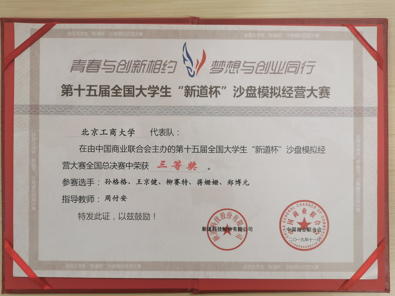 11月15日至17日,由中国商业联合会主办,金陵科技公司承办,新道科技有限公司承提供技术支持的“第十五届新道杯全国老员工企业模拟经营大赛(本科组)总决赛”在南京金陵科技公司隆重举办。来自全国30个省市自治区一百多所高校的120支队伍参加比赛。由公司yl23455永利文科实践中心组织,周付安、田芬老师指导的参赛代表队荣获了三等奖。