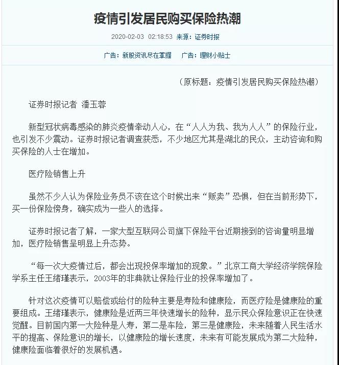 保险研究中心主任王绪瑾教授疫情期间先后接受《经济日报》《金融时报》《证券日报》《中国财富网》等多家媒体采访,就疫情对保险业的影响、机会和建议提出观点,如:保险公司应大力发展网上营销;疫情将会促进健康保险的投保率增加,保险业应该把握机会提供合适的健康保险产品,以提升国民健康保障程度;应进行健康保险产品创新,如免观察期,但要注意防止带病投保,以实现雇员的健康和公司的稳健经营;政府与保险公司应该针对复工提供疫情传染的健康保险产品,政府予以税优支持。