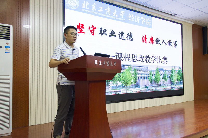 参赛教师在比赛现场依据课程特点,深入发掘和提炼课程所蕴含的思政要素,结合比赛主题纳入引导员工树立廉洁从业、职业道德等廉洁价值观内容,实现思想政治教育与专业知识讲授的有机统一。荣获比次大赛一等奖的贸经系吴优老师以《服务全球化》为题,讲述了中医药服务贸易在全球的发展趋势、内容、模式等。同时他还通过同仁堂、广誉远两家老字号的“炮制虽繁必不敢省人工,品味虽贵必不敢减物力”等古训教导同学们,遵守职业道德、清廉做人做事。人无信不立,业无信不兴,国无信则衰,他呼吁广大学子承担自己的历史使命与责任,赢得在场师生评委的一致认同。