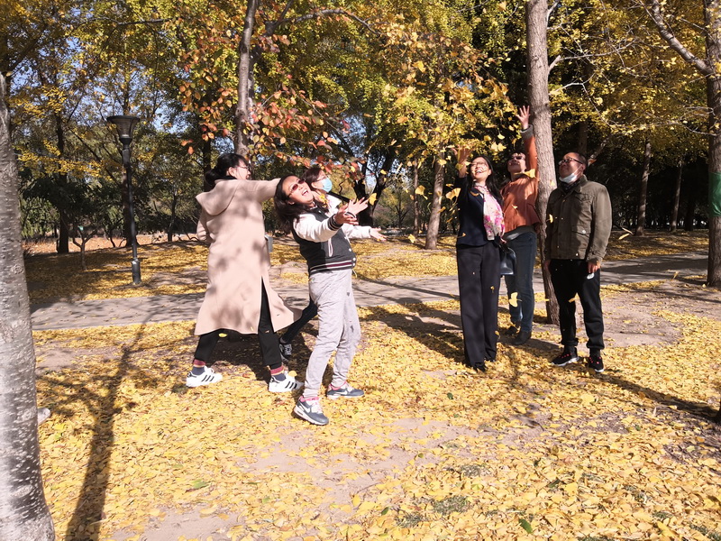 进入公园后,大家一边观赏着秋日美景的温馨恬静,一边享受着健步走活动带来的激情活力。看,玉渊潭中鲜花与红叶相伴,湖边芦苇与残荷共舞;听,刺猬河两岸风光旖旎,水光潋滟,河水拍打岸边发出悦耳韵律。伴随着宜人秋景,在轻松的氛围中,大家愉悦地沟通交流,放松身心。三五成群的女教工一路携手共进,一路欢歌笑语,用手机记录今年秋天的最后美景。