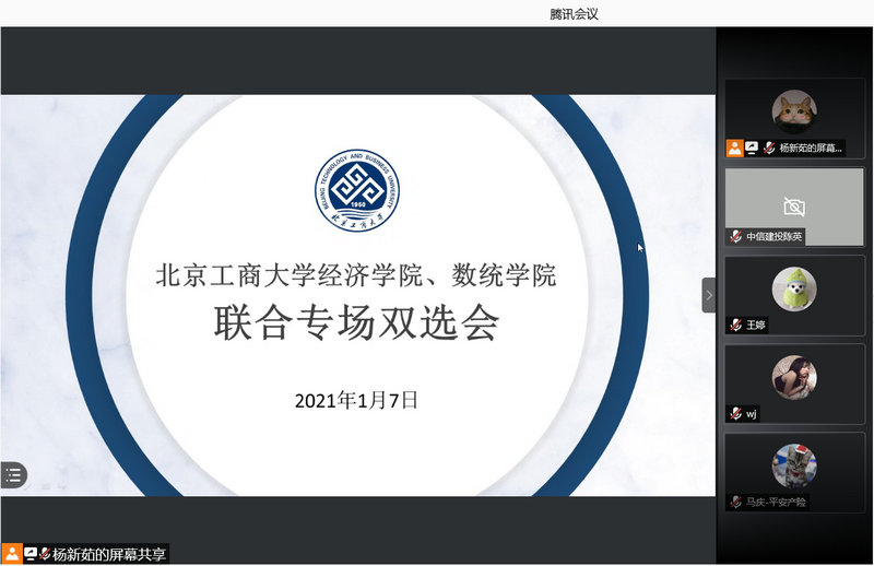 为进一步贯彻落实党中央、国务院关于促进高校毕业生就业工作的决策部署,拓宽公司2021届毕业生就业渠道,结合疫情防控期间校园招聘工作的安排,yl23455永利联合数统公司积极搭建线上网络平台,分别于2021年1月7日上、下午举办了两场线上专场双选会,为用人单位和公司毕业生提供高效、便捷的线上招聘服务。参加此次双选会的有公司党委副书记李艳春、数统公司党委副书记徐伟钦及150余名经济、数统2021应届毕业生等。双选会由就业辅导员卫一润、杨新茹、王楠主持。