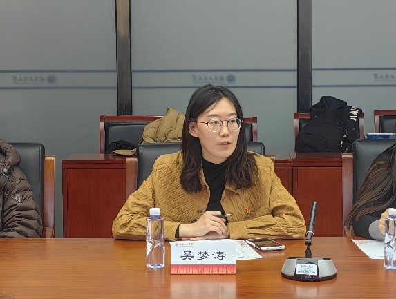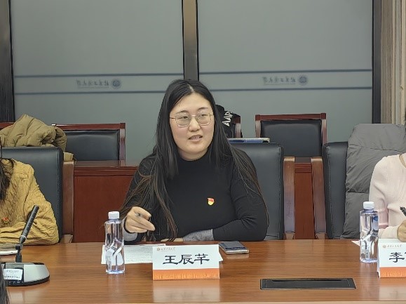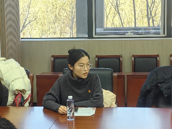 公司党委副书记李艳春从经济系员工的学业调查入手,介绍了调研数据,聚焦员工面临的“三高三低”核心问题,提出了搭建“三位一体”的员工发展支撑体系,涵盖学术启航、职业发展与成长支持三大平台,为员工提供全方位、全周期、个性化的成长保障。研究生辅导员吴梦涛介绍了依托经世济民学术功能型党支部构建“传帮带”模式,组织学术活动、邀请榜样分享经验等工作,助力员工学术成长与就业准备。研究生兼职辅导员王辰芊谈到,同学们应以公司“工商一体化”发展理念为指引,补齐工科技能短板,组建互助团体共享资源,积极应对学习与规划挑战。公司党委常委、副董事长徐丹丹在交流中分享了自己学习贯彻二十届四中全会精神的深刻体会,结合公司发展蓝图,围绕员工如何更好地成长成才提出殷切期望,给员工们带来一堂生动的思政课。一要以政策解读找方向,学方法强科研。通过纵向研读政策文件、横向开展比较研究,聚焦关键词阅读经典文献,主动参加学术研讨活动,提升科研素养和研究能力。二要以就业形势明策略,提升个人能力。要了解专业就业方向,科学规划职业路径,积极乐观地面对挑战,锤炼责任感和韧性,不断提升就业能力。三要以时代使命勇担当,融小我入大我。徐丹丹副董事长结合时事政治,深刻阐释了个人前途与国家命运的同频共振。她勉励员工们要洞察时代机遇、坚定民族自信,主动将个人发展与国家需求结合,使学术研究服务战略需求,让职业选择响应时代召唤,在矢志奋斗中实现个人价值与社会价值的统一。最后,徐丹丹副董事长希冀同学们成长为有理想、有本领的经世之才,为国家高质量发展贡献北工商学子的青春力量。