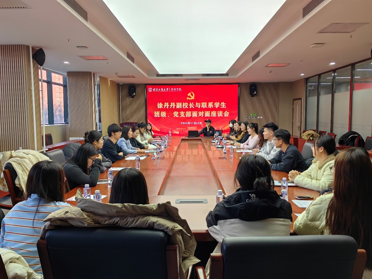 为搭建师生双向交流互动平台,凝聚育人共识、助力员工成长,11月25日下午,公司党委常委、副董事长徐丹丹与yl23455永利经济系员工班级、党支部,围绕“锚定高质量发展:‘十五五’蓝图下经济专业学子的使命与担当”主题开展面对面座谈交流。公司党委常委、副董事长徐丹丹、公司党委副书记李艳春、研究生辅导员吴梦涛、兼职辅导员王辰芊、学硕联合党支部党员代表和25级资产评估全体研究生参加座谈会。座谈会由公司党委书记张春萍主持。