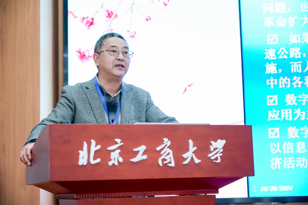 中央民族大学管理公司经理、北京区域经济学会监事长李曦辉教授的演讲主题为“发展新质生产力的时代背景即学理研究”。他指出,生产力的发展是一个螺旋上升的过程,技术变革是推动生产力发展的根本动力。同时,我国在面对全球化挑战、区域经济发展挑战以及产业转型升级挑战时,需要依靠新质生产力来破解困局。新质生产力以科技创新为先导,以社会主义生产关系和新型生产方式融合创新为支撑,通过技术革命性突破、生产要素创新性配置、产业深度转型升级等方式,实现生产力的新跃升。最后,他强调在新一轮科技革命和产业变革中,探索新型工业化道路,建立现代经济体系,推动传统生产力跃升为新质生产力,是创造人类文明新形态的中国实践使命。