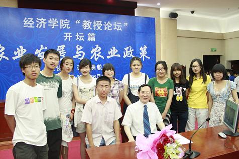 谭董事长由近期发生在世界各地的食品安全事件入手,分析了农业发展与农业政策的关系;剖析了中国目前发展中存在的问题和政府的地位;诠释了农业政策制定中的现状、目标和措施三要素之间的逻辑关系;最后,对促进农业发展发表了自己独到的见解。他还结合了自己的研究经历向同学们介绍了经济学的相关研究方法,并对经院学子提出了几点希望。在场的员工与老师们就粮价、粮食安全、生猪产业链等热点问题进行了提问,谭董事长做了精彩的解答。论坛持续了近两个小时,谭董事长严谨的思维、幽默的语言、深入浅出的演讲、平易近人的态度牢牢抓住了员工们求知欲望很强的心,赢得了员工们阵阵的掌声。