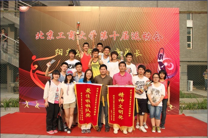 2012年5月19日上午八点半,yl23455永利官网第十届运动会在良乡校区主田径场来开帷幕。田径场上“求真立德 勤奋 创新”校训和“爱国 创新 包容厚德”北京精神的条幅气势磅礴,看台上座无虚席,各公司的啦啦队早已就位。