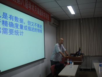 吴教授首先以什么是科学、什么是科学的研究方法等基本问题的分析开头,高屋建瓴地对统计学作为一门科学的性质作了详实的阐述。接着,吴教授分析了什么是统计模型、为什么需要统计模型等系列问题。吴教授认为,统计学的精髓在于数据分析,衡量统计学人才培养的标准应该是能否具有进行实际数据分析能力。在科学研究,包括统计研究中要敢于怀疑一切,不能迷信权威,这样才能有所发现。讲座后半部分,吴教授对一些现代统计方法、统计软件R及新作《复杂数据统计分析》进行了简单介绍,并回答了同学和老师们的相关问题。