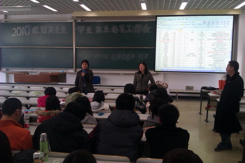 2012年11月1日,在良乡文2-303教室,财政系专门组织了对2010级员工的学业和就业规划指导。系主任姜竹教授带领吴强、史明霞、杨琼等老师,根据员工实际,分别进行了就业、考研和出国方面的规划指导。