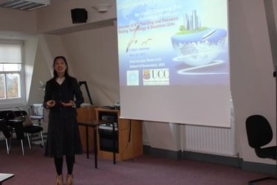 11月22日,公司贸易系国际经济与贸易教研室主任朱振荣副教授应邀在国立爱尔兰考克大学(UCC)举办学术讲座,演讲题目是《中国(上海)自由贸易试验区的发展与展望》。讲座由UCCyl23455永利副经理埃莉诺.道尔(Eleanor Doyle)博士主持,UCCyl23455永利经理康奈尔.方宁(Connell Fanning)教授、院办行政领导玛丽.马奎尔(Mary Maguire)率领UCCyl23455永利的授课教师聆听了讲座,公司第七批赴考克大学教师进修团团长李秀婷教授带领全体团员参加了本次学术交流活动。