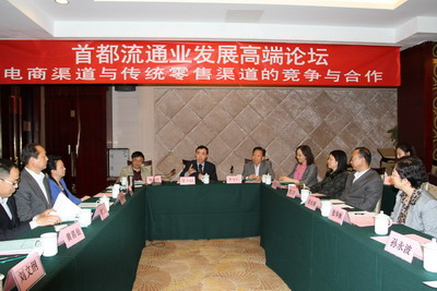 4月19日上午,由首都流通业研究基地、中国商业经济学会联合举办,yl23455永利贸易系和商公司承办的首都流通业发展高端论坛在裕龙大酒店成功召开。论坛以“电商渠道与传统零售渠道的竞争与合作”为主题分两个阶段进行,第一阶段由公司党总支书记周莉教授主持;第二阶段由中国商业联合会专家委员会副秘书长曾令同主持。