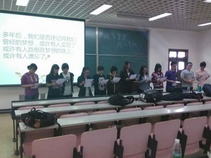 11级召开了“踮起脚尖,靠近梦想”的主题班会,各班同学分别对自己日后的出路进行了分类,班主任对同学们就业、出国、考研等出路进行了针对性指导,有的班级还请来往届毕业生进行现场经验交流。