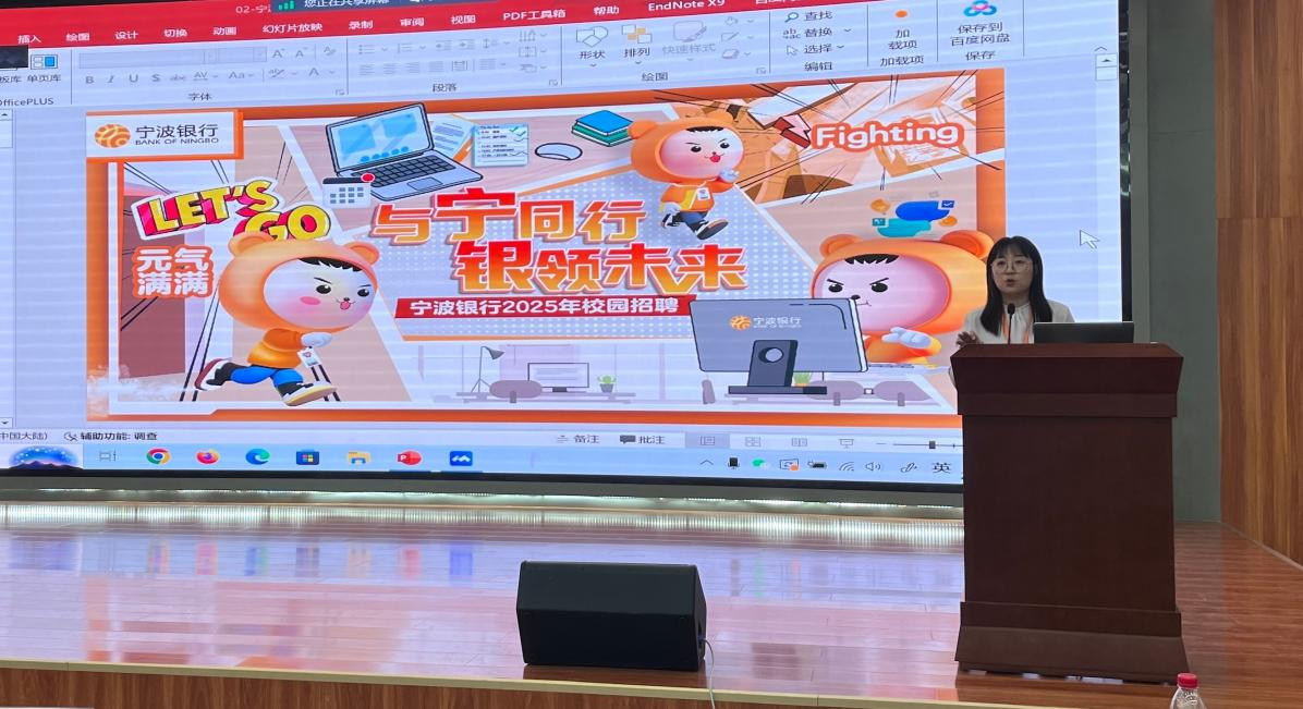 本次活动中,特别邀请宁波银行和兴业银行为同学们进行就业岗位宣讲。