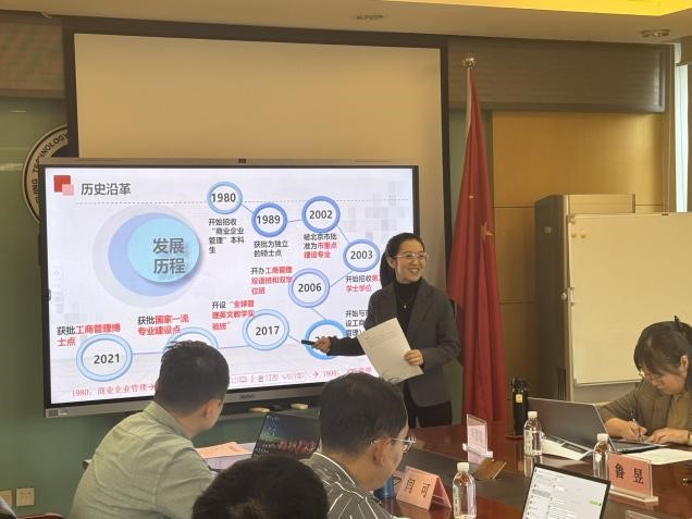 财务管理、会计学、工商管理、市场营销、物流管理、供应链管理六个专业的负责人依次进行汇报,围绕专业发展现状、核心优势、存在问题、未来目标及实施路径展开系统阐述,全景呈现专业发展规划。财务管理专业以“数字化转型”为核心,详述该专业在财务大数据分析、数智管理虚拟仿真等领域的课程改革成效,以及“厚基础、强实践、重创新”的培养体系建设蓝图;会计学专业聚焦“智能会计”特色,介绍专业依托国家级教学团队构建的“全英语教学实验班+科研反哺教学+产教深度融合”三位一体培养模式;工商管理专业阐述“数字化管理+全球管理”差异化培养路径,计划通过课程再造、校企协同等举措强化员工数字素养与国际视野;市场营销专业以“数字驱动营销创新”为核心,展示专业在大数据商业分析、实践能力培养方面的突出优势,未来将深化“工商一体化”特色,构建更完善的数字营销知识体系;物流管理专业分享了该专业作为我国最早开设的物流管理本科专业,在智慧物流、绿色物流等领域的深厚积累,规划中明确将进一步提升数智化与绿色化课程占比,持续强化产教融合生态;供应链管理专业聚焦“数智化+食品供应链”特色方向,介绍专业作为新文科建设试点,在跨学科融合、产学研协同育人方面的创新探索。
