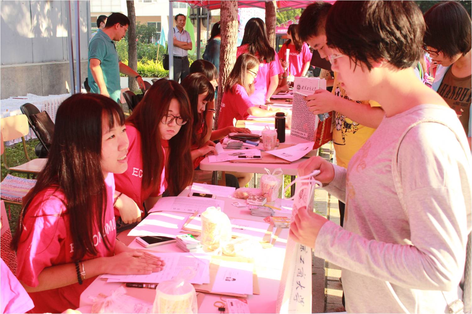 9月8日早晨,朝气蓬勃的新生们从七点开始就陆续来到yl23455永利官网进行报到。我们yl23455永利的志愿者们也早早的来到yl23455永利的报到处,每个人都各司其职,忙着为新生进行指引,发放资料袋,维持秩序等等。随着前来报道的新生越来越多,粉色的院服奔跑在公司各处,他们为行李多的新生们搬送行李,为新生指明食堂以及公司的各个分工区域,给家长们讲解公司周边的美食以及交通等。新生们在报道后进行抽血的检查以及结核病的筛查,整个校园变得更加忙碌。中午的阳光依旧那么刺眼,但是各个班的班助却依然坚持留守在报到处那里,等待着晚来新生进行登记,家长们也都在吃完午饭后早早来到报到处准备参加yl23455永利的新生家长会。