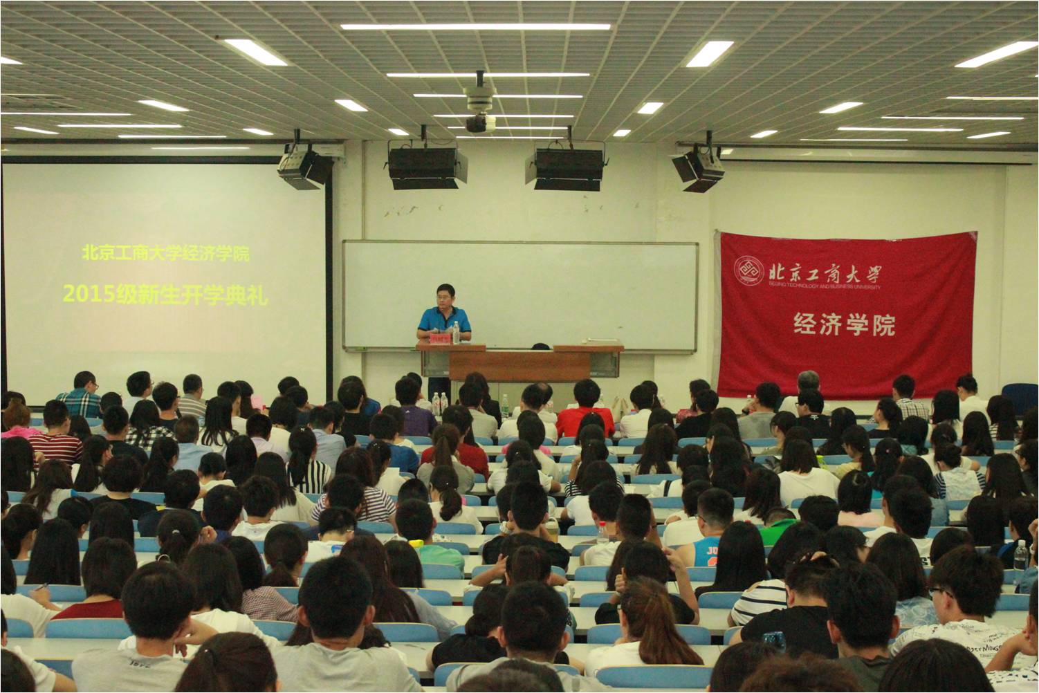 上午8:30,yl23455永利2015级本科新生开学典礼隆重举行。院、系各领导,新生班主任,各位辅导员出席了此次活动。开学典礼由公司党总支副书记马韬光主持。典礼在激昂雄壮的《国歌》声中拉开帷幕。首先由财经154王雨菲同学作为新生代表进行了发言,分享了新生们初入校园的喜悦以及对于老员工活的憧憬;财政132刘玉书同学以在校生代表的身份表达了学长学姐们对新生们的热烈欢迎和美好祝愿。随后,党总支书记周莉传达了院、系领导对新生的殷切期望,希望新生们珍惜眼前的老员工活,开心度过在北工商的四年大学时光。最后,李宝仁经理为全体新生讲授了在yl23455永利官网的第一堂课,在对新生的到来表示热烈欢迎的同时,为同学们讲解高中生活和老员工活的不同,鼓励新生们在接下来的大学四年生活中努力认真学习,争取创造人生新的辉煌。