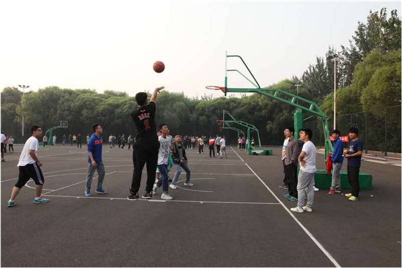 伴随着清晨的第一缕阳光撒向大地,新生们便陆陆续续来到了各项运动的活动场地,等待着体育活动开始。当热情洋溢的歌声在耳畔响起时,15级新生们便跟随着音乐的节奏一起摇摆,跳出朝气蓬勃的热力操,同学们激情昂扬的跳动,不仅跳出了他们对生活的无比热爱,也展示出了他们对未来的无限憧憬。他们用活力四射的舞姿、阳光灿烂的笑容与初升的朝阳一起迎接这美好的一天。而篮球场上那优美的抛物线更是唤醒了男生们还在沉睡的活力与热情,运球,传球,投篮等一系列运动都使得15级新生对于篮球的兴趣得以培养,特长得以施展。不仅如此,我们还为新生们组织了以班为单位的篮球联赛,不但让新生们培养了良好习惯,还增强了各班的凝聚力和向心力。与此同时,跑步作为所有运动中最普遍的一项,广受新生们的追捧,他们排着整齐的队伍、喊着嘹亮的口号,道出了工商学子不畏困难、敢于坚持、一往无前的精神。其余的同学则根据自己的兴趣爱好选择羽毛球、毽子、排球以及健身器材进行锻炼,生活区因为有了前来锻炼的新生们而变得更加充满活力。