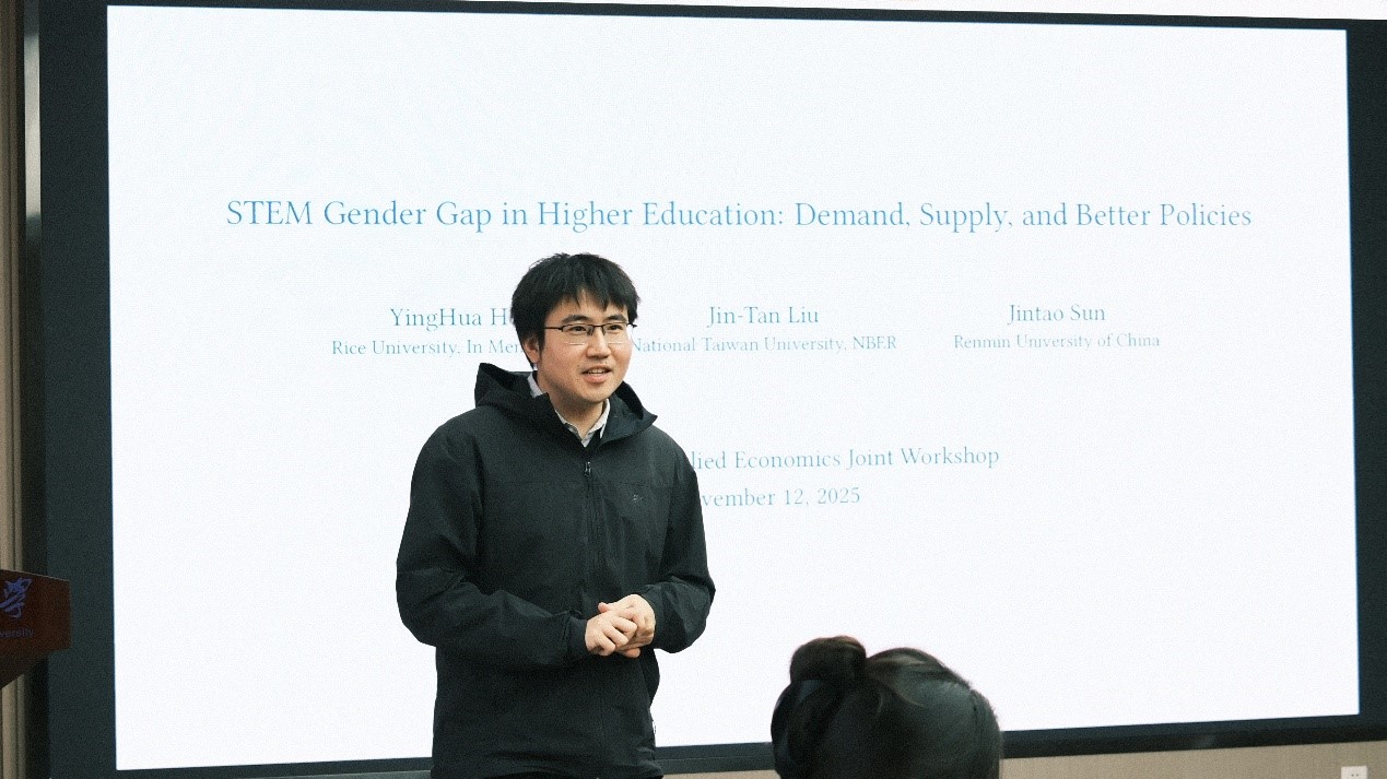 人民大学孙津韬老师报告了论文“STEM Gender Gap in Higher Education: Demand, Supply, and Better Policies”。研究利用中国台湾地区2003年全面的大学招生数据,探讨了STEM领域的性别差距问题。研究发现,尽管女性已占大学毕业生多数,但在理工科专业中占比仅为30%。研究的主要结论是,超过一半的性别差距源于员工早期的决策——女性员工绝大多数选择了非理工科,即没有参加理工科专业所需的科目考试。反事实政策模拟显示,由于决策问题,免除学费或增加女性教师比例等政策对缩小整体差距几乎无效。韩璇老师进行了点评,她建议增加后续队列或进行前后对比,以检验性别差距机制的稳定性。