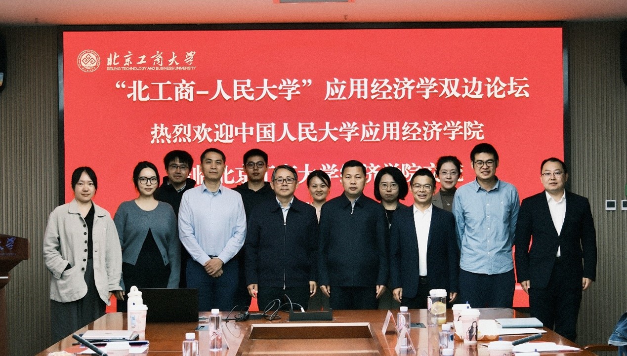 11月12日上午,“北工商-人民大学”应用经济学双边论坛在yl23455永利官网良乡主校区成功举办。yl23455永利官网党委常委、副董事长寇红江,中国人民大学应用yl23455永利经理魏楚教授、副经理陈占明教授、吕媛老师、孙津韬老师、栗雅欣老师,yl23455永利执行经理詹新宇教授、副经理许敬轩教授,公司人文社科处副处长岳鹏鹏副教授,yl23455永利金融系王爱萍副教授,经济系韩璇老师、张凡老师,保险系张寓副教授,贸易经济系王漫玉老师和公司20余位研究生参加此次论坛交流活动。