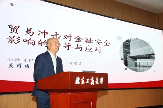 金融时报社原总编辑、研究员姜再勇分享的主题是“关于贸易冲击对金融安全影响的思考。他从贸易冲击对金融安全的传导渠道和金融政策措施集成的角度进行分析,提出构建金融安全常备体系以降低贸易冲击影响。