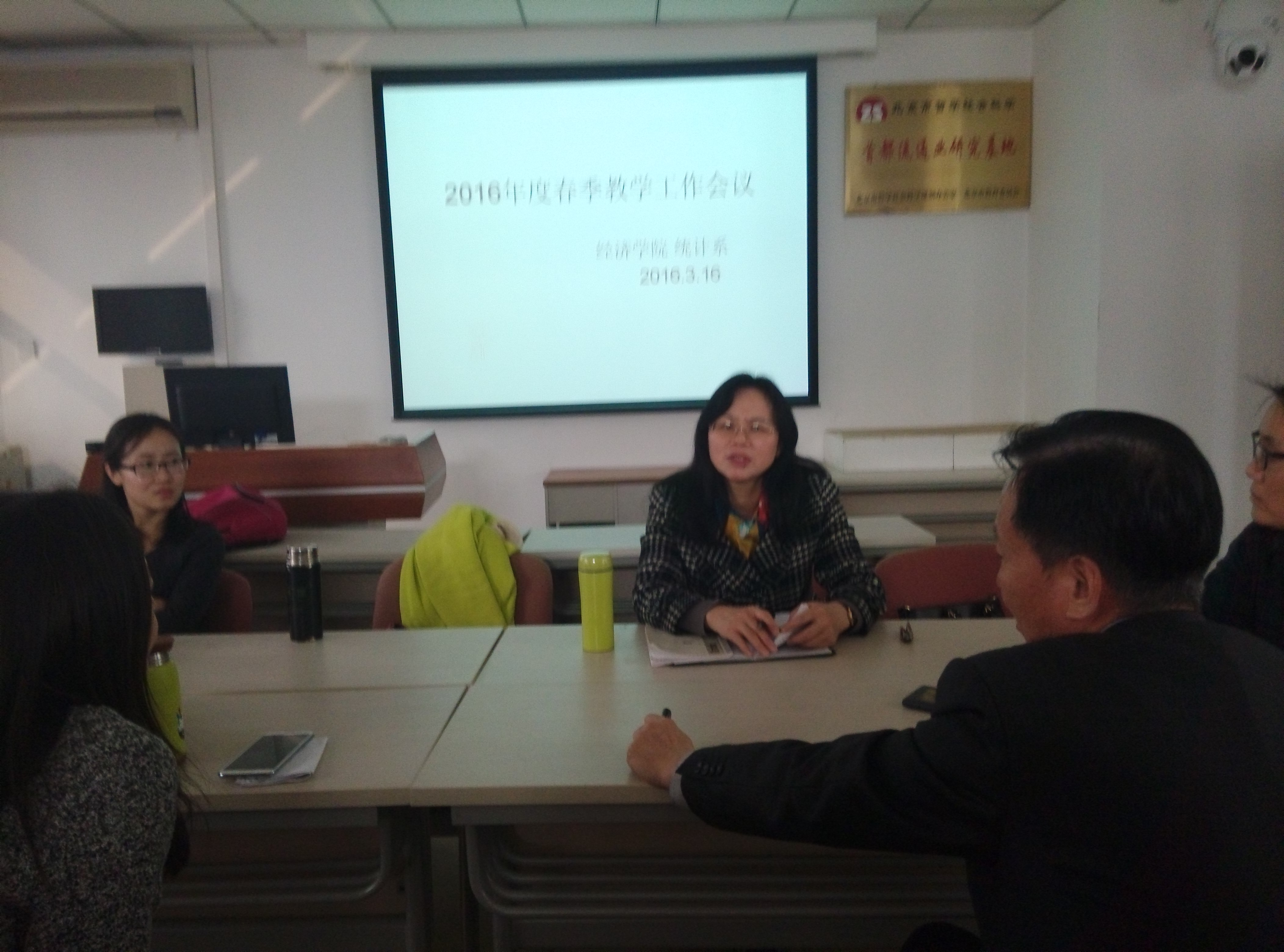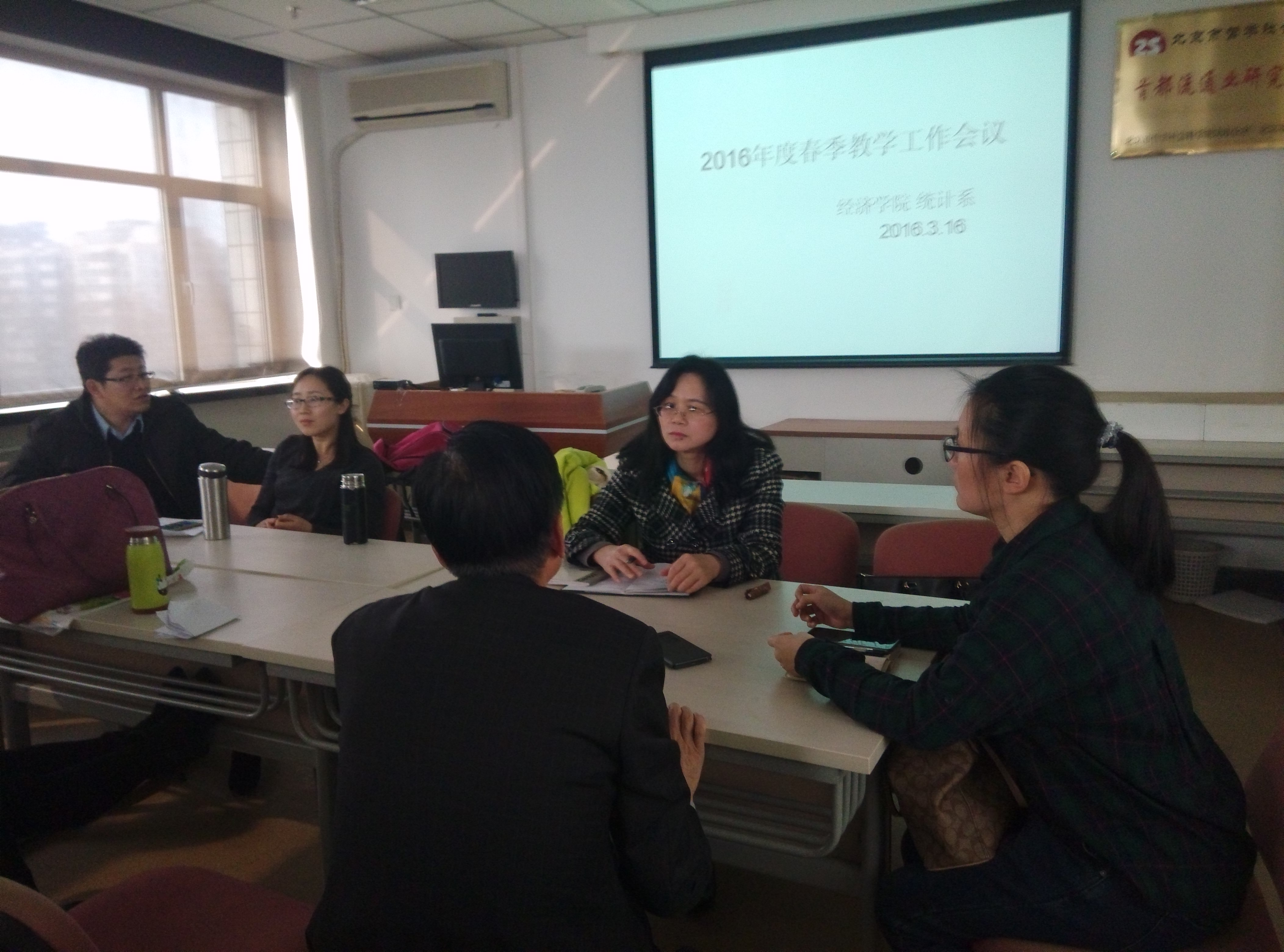 年春季教学工作会议。会议主要就本学期主要开展的工作进行研讨,统计系全体教师参加会议。