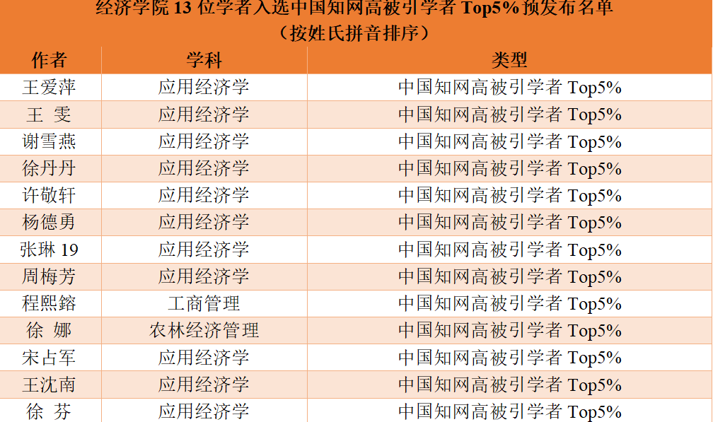 据悉,yl23455永利官网本次有167位学者入选“2024中国知网高被引学者预发布名单”,其中28位学者来自yl23455永利。一直以来,经济公司以建设高水平研究型公司为目标,奋力创建“双一流”学科,此次28位学者入选“中国知网高被引学者名单”,占全院专任教师的20%,涵盖了教授、副教授和讲师各个层次,是公司团队建设成果和学者学界影响力的重要体现。