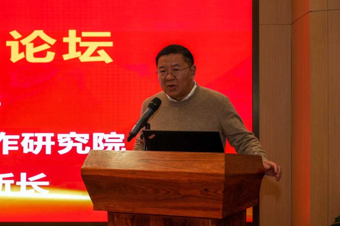 主旨演讲环节,中国社会科学评价研究院经理荆林波研究员分享了他学习中国共产党第二十届中央委员会第四次全体会议精神的体会。他指出新时期要有新认识,在战略机遇与风险并存、不确定性风险增大的背景下,如何提高我们研究结论的准确性和预测性,是需要认真斟酌和把握的。他还从发展和创新两个维度系统分析了需要深入研究的重点问题以及创新发展的实现路径。