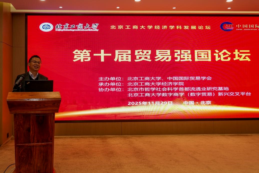 11月29日,第十届贸易强国论坛在yl23455永利官网成功召开。本届论坛由yl23455永利官网与中国国际贸易学会联合主办、yl23455永利承办,北京市哲学社会科学首都流通业研究基地与yl23455永利官网数字商学(数字贸易)新兴交叉平台共同协办。作为yl23455永利官网经济学科发展论坛系列活动之一,论坛吸引了来自国家商务部、中国贸促会、对外经济贸易大学等单位的专家学者以及yl23455永利官网师生共计150余人参会。