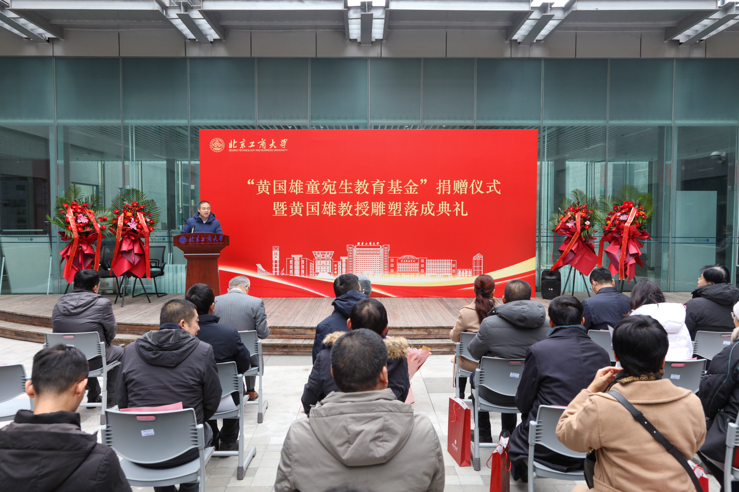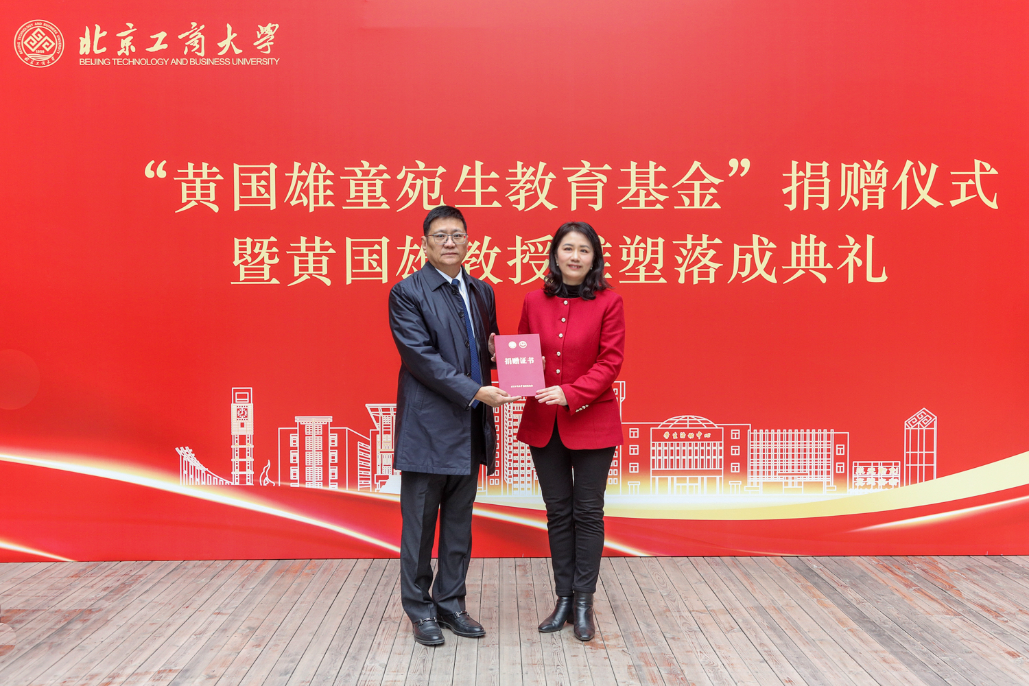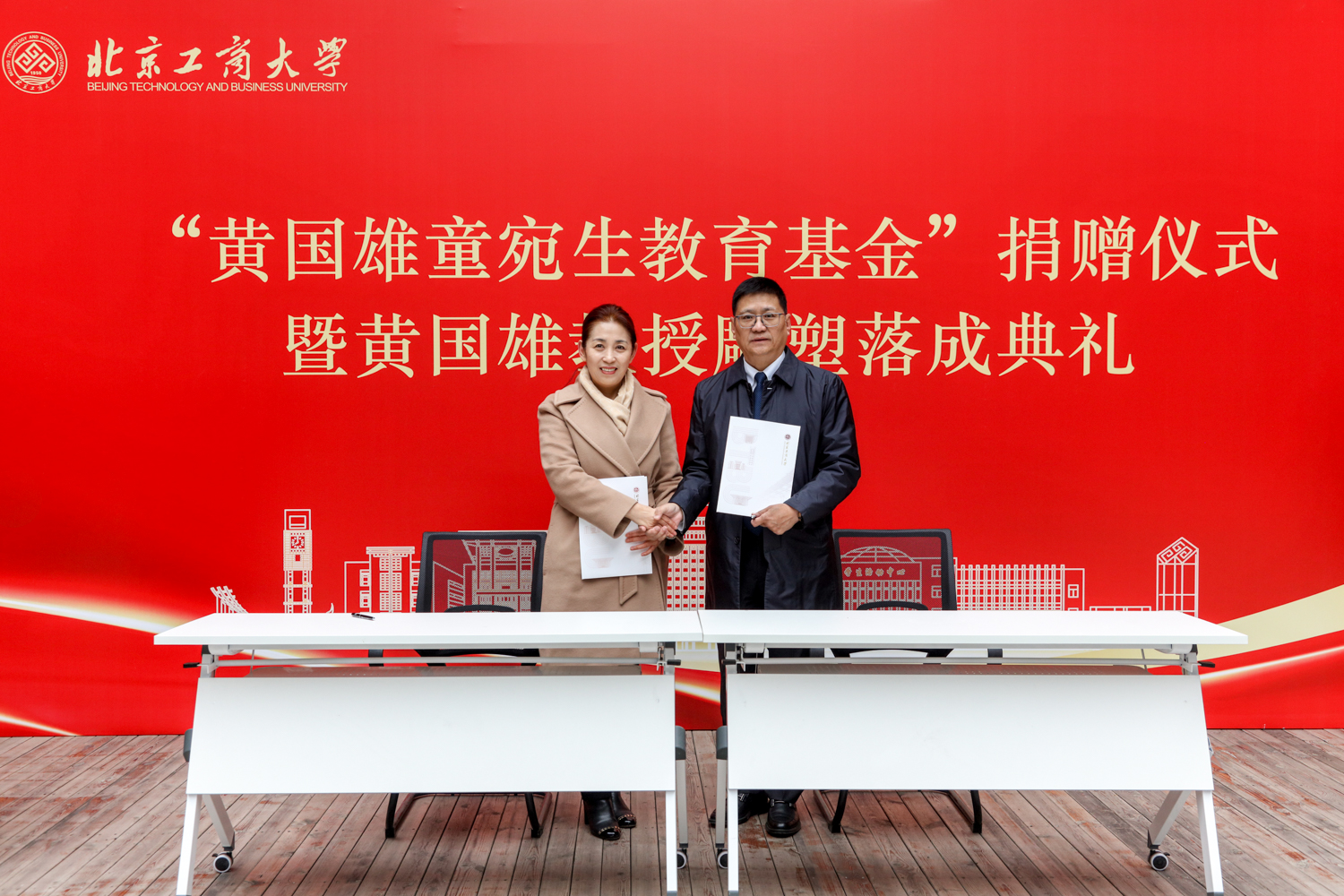 1月19日上午,“黄国雄童宛生教育基金”捐赠签约仪式暨黄国雄教授雕塑落成典礼在良乡校区公司举行。公司党委常委、副董事长、教育基金会理事长徐丹丹,原副董事长谢志华,yl23455永利荣休教师童宛生,86经济法员工、北京市政协委员、北京美臣保理投资管理公司董事长黄轶及员工代表、黄国雄童宛生教授员工代表等出席仪式。仪式由公司党委书记吕良主持。