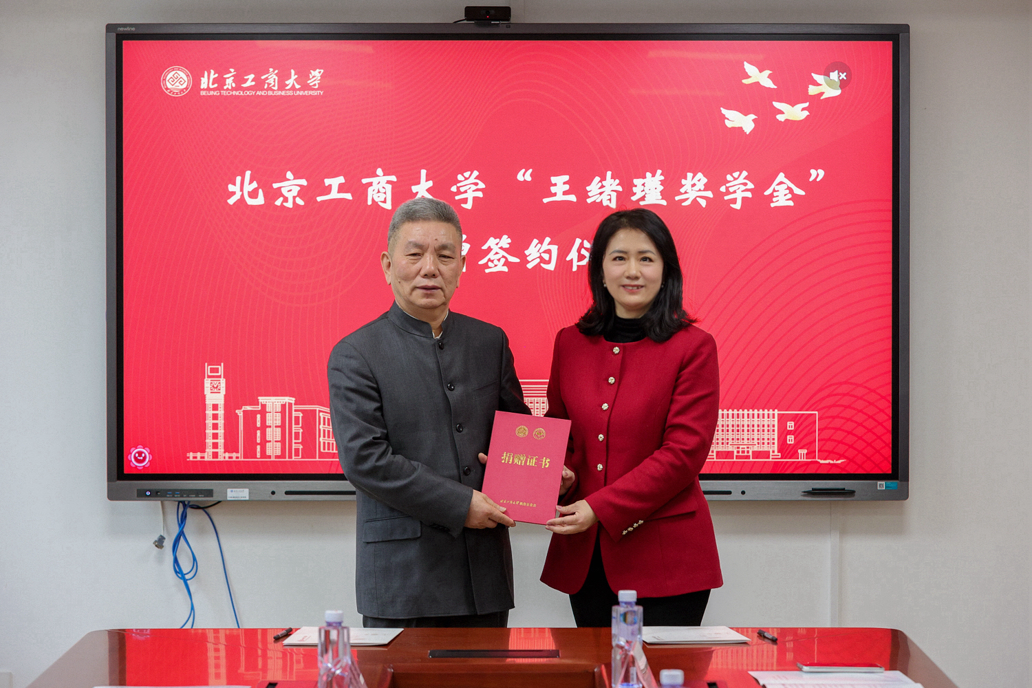 随后,徐丹丹代表教育基金会与王绪瑾教授签订了捐赠协议。詹新宇代表公司接受捐赠支票,张春萍代表教育基金会向王绪瑾教授颁发了捐赠证书。