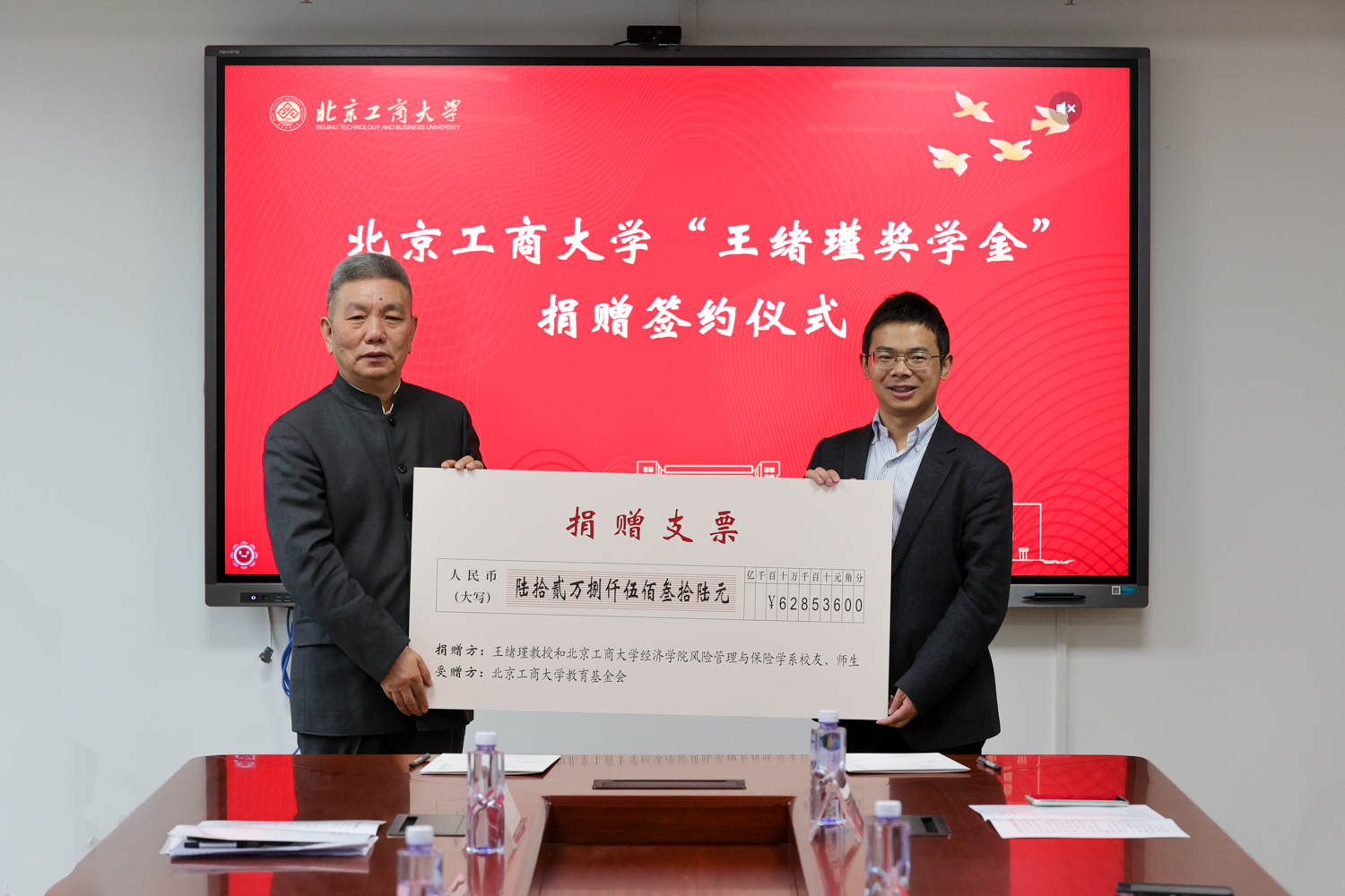 1月19日上午,“王绪瑾奖学金”捐赠签约仪式在良乡校区公司举行。公司党委常委、副董事长、教育基金会理事长徐丹丹,风险管理与保险学系创始主任王绪瑾教授出席仪式,员工会、教育基金会办公室主任张春萍,员工会副会长、教育基金会理事杨林,公司党委书记吕良,执行经理詹新宇,党委副书记李艳春,副经理马雪娇、牛晓燕、关晶,风险管理与保险学系主任徐徐及部分师生代表参加捐赠签约仪式。仪式由吕良主持。