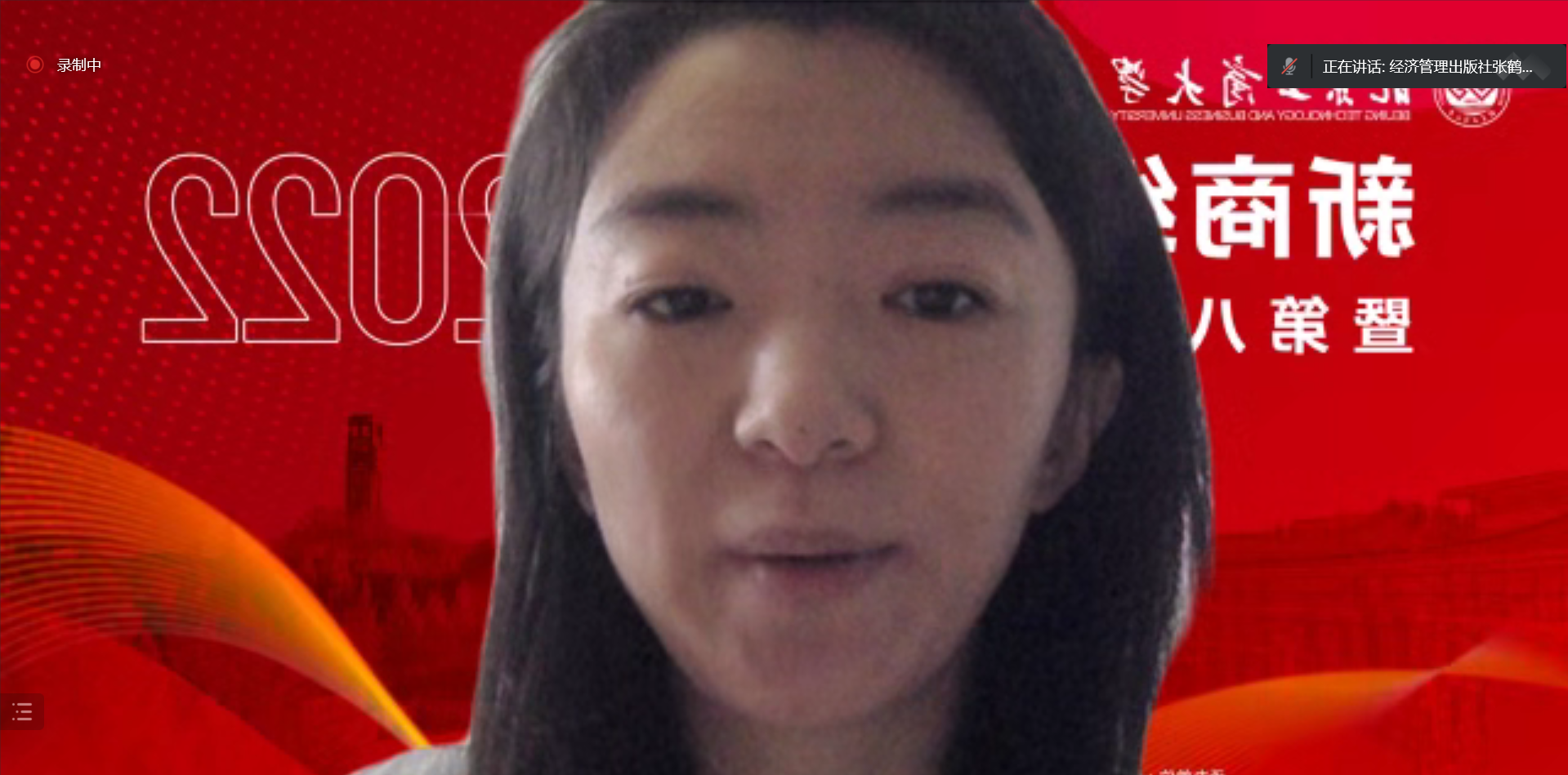 在第二阶段,李丽教授简单回顾了上半段论坛的情况,强调了本专业的特色和优势,并对校外导师参与论坛表示感谢。南京审计大学统计与数据科公司徐振宇教授谈到培养员工的经验,提醒同学们在未来打算和深造要进行提前规划,同时以一些同学的经历为例,强调出身不能决定学术成绩,提醒同学们要对自己有信心,考试是求同过程,做学术是面向未知的求异过程。要找定目标,扬长避短加扬长补短。苏州悦果互动信息技术优先公司总经理张建设回忆了自己与北工商的深厚感情,他提到自己是校外导师的实际受益者,在北工商的学术研讨会上深受启发,开启了自己的职业道路。他也分享了对食品行业发展的一些思考,由黄桃罐头引发的食品行业数字化,以及共同富裕问题。长沙沁坤大宗农产品批发市场股份有限公司董事长钟晓瑜分享了自己的工作经历,他谈到中印联合制药的情况以及中国和印度的制度差异,由此带来的合作项目,也讲到了合作带来运输运营原材料等成本的降低以及给国内人民带来的福利。北京睿谷投资有限公司总经理傅强详细阐述了期货的核心内容,提醒同学们学好经济学、金融学和投资学的基础理论,强调要学好期货背后标的物相关知识,提到睿谷对基本面分析的坚持,强调基本面分析的重要性。中粮期货有限公司副总经理邱菡仪表达了自己对母校的感情,讲述了在中粮集团涉及利率汇率方面的风险管理,她鼓励同学们在就业过程中要保持信心,在求学期间找准努力方向。天下城市智库创始人罗建法讲述了智库在经济和社会运行中的作用,希望未来更多同学参与到智库研究中,强调同学们在公司阶段多读书、修炼内功。北京林业大学经济管理公司研究生导师候建分享了自己培养研究生的经验,强调员工要耐得住寂寞、经得起挫折,他认为研究生要有写文章经历,要至少参与一个项目,至少参加一次学术会议,培养自主学习能力。河北大学外国语公司讲师党蓓蓓分享了自己的工作经历,她提到养老产业经济中的问题,中国与日本经济的联系等,并对同学们提出建议:处理好博与专,知与实的关系,不仅要学知识,更要学逻辑。申万宏源证券资产管理事业部总经理助理吴惧再次强调了同学们要在入学之初就做好规划,他指出要系统性学好理论知识,多读不同类型的书,同时也提到研究生和本科生的区别,提醒同学们多去实践,用学习的心态去实习,做好实习工作。中国期货市场监控中心市场监控部经理刘国良讲述了自己的读研经历,向同学们推荐了《经济运行的真相》《置身事内》《债务危机》等七本书。
